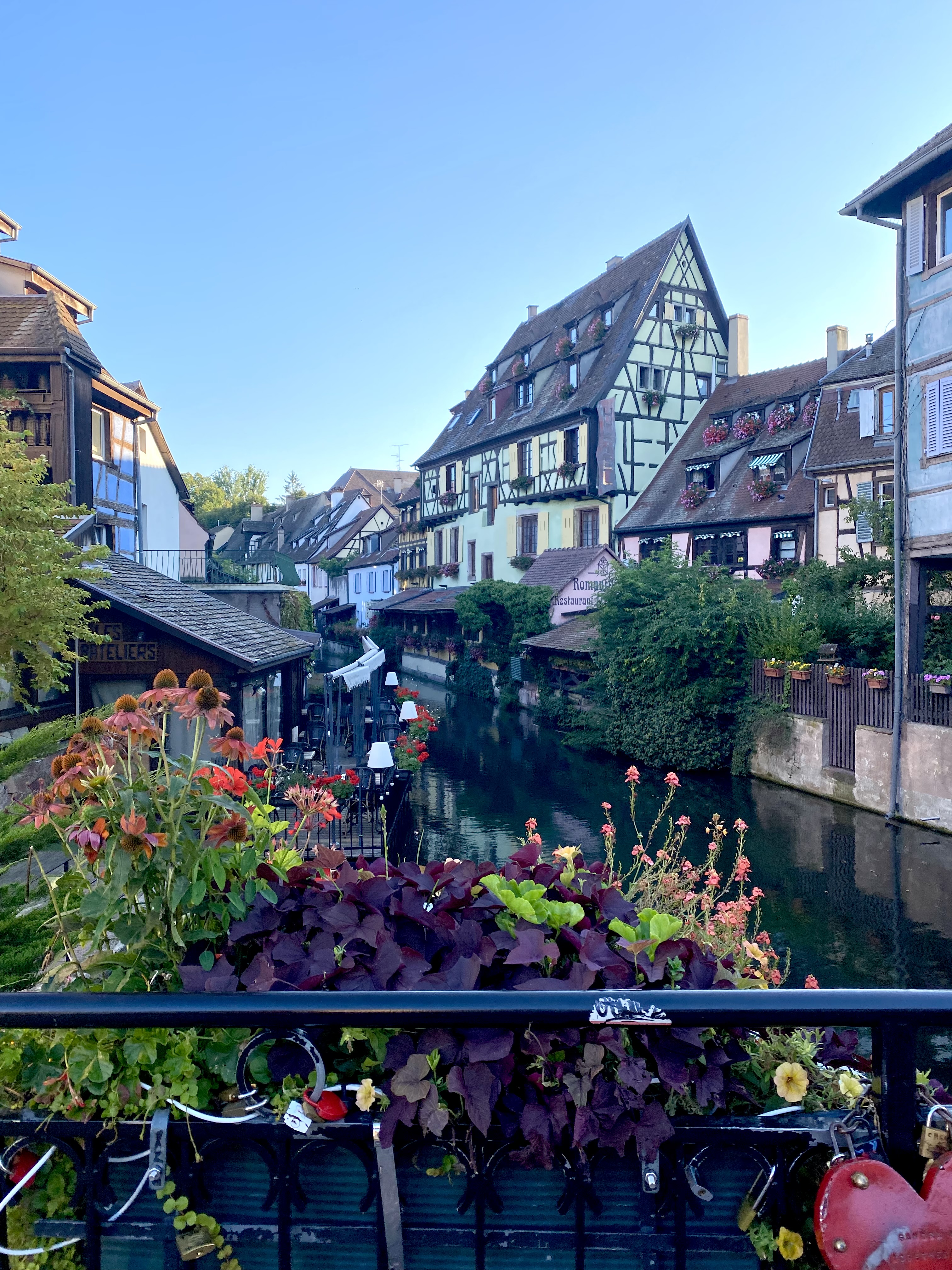 Remember how I mentioned that I loved being in such close proximity to multiple borders? Well, after a day in Germany, it was time for dinner in France! I had been dying to visit Colmar (more timber, anyone?) and was so excited to be able to cross this quaint city off my list. Once I saw pictures of this place, I knew I had to go to there. Looking like a straight up fairytale, (Beauty and the Beast was rumored to have been inspired by it) Colmar is known for its colorful, timbered houses, loaded with rich culture and history, and German/French culinary cuisines.